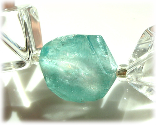 透明感たっぷりのブルーグリーンのアパタイト原石が