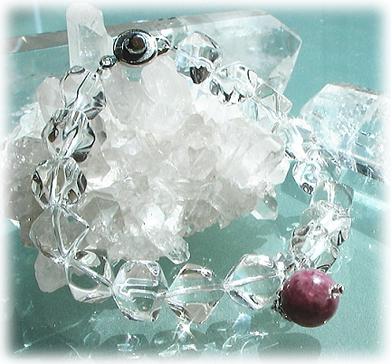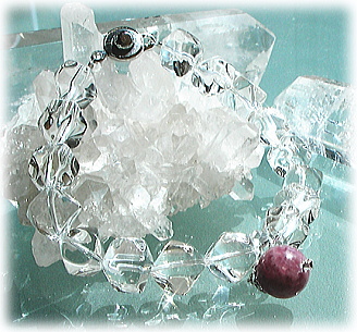 光の透過が、立方体の神秘的な形の水晶の壁面内で 無限の拡がりを見せ 美しさと強い光の浄化力とエネルギーがメインストーンと持ち主をさらに輝かせながら 着けている時はストレートにとりこめるような「光」として感じ取ることができます。 ブレスレットとしてもとても美しく 大粒のクリスタルの煌きと存在感が 天然石ブレスというよりは、高級感のあるクリスタルアクセサリー系のデザインとして とてもセンシティブなフォルムによる輝きと素敵な存在感とともに