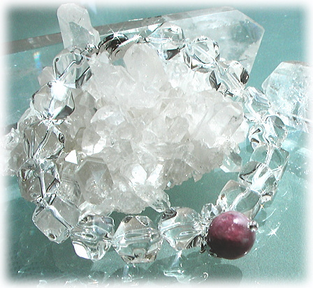 光の透過が、立方体の神秘的な形の水晶の壁面内で 無限の拡がりを見せ 美しさと強い光の浄化力とエネルギーがメインストーンと持ち主をさらに輝かせながら 着けている時はストレートにとりこめるような「光」として感じ取ることができます。 ブレスレットとしてもとても美しく 大粒のクリスタルの煌きと存在感が 天然石ブレスというよりは、高級感のあるクリスタルアクセサリー系のデザインとして とてもセンシティブなフォルムによる輝きと素敵な存在感とともに