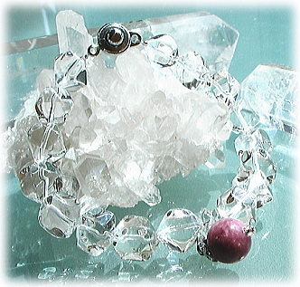 光の透過が、立方体の神秘的な形の水晶の壁面内で 無限の拡がりを見せ 美しさと強い光の浄化力とエネルギーがメインストーンと持ち主をさらに輝かせながら 着けている時はストレートにとりこめるような「光」として感じ取ることができます。 ブレスレットとしてもとても美しく 大粒のクリスタルの煌きと存在感が 天然石ブレスというよりは、高級感のあるクリスタルアクセサリー系のデザインとして とてもセンシティブなフォルムによる輝きと素敵な存在感とともに