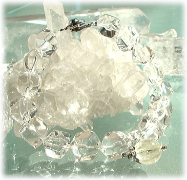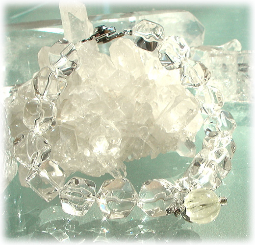 光の透過が、立方体の神秘的な形の水晶の壁面内で 無限の拡がりを見せ 美しさと強い光の浄化力とエネルギーがメインストーンと持ち主をさらに輝かせながら 着けている時はストレートにとりこめるような「光」として感じ取ることができます。 ブレスレットとしてもとても美しく 大粒のクリスタルの煌きと存在感が 天然石ブレスというよりは、高級感のあるクリスタルアクセサリー系のデザインとして とてもセンシティブなフォルムによる輝きと素敵な存在感とともに