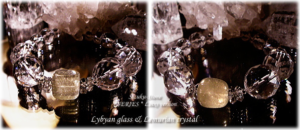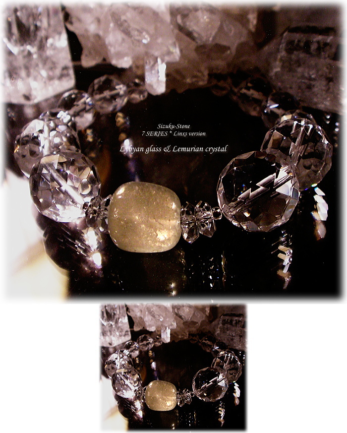 美しいリビアングラスとレムリアンが共鳴しあい…強いエナジーの環の感覚を強く伝えてくれるブレスです。