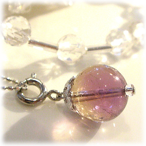 サードアイ(直観力)を増幅させるアメジストと、 明るい方向性へと導き肉体との調和をもはかるシトリンが同居する石です。
