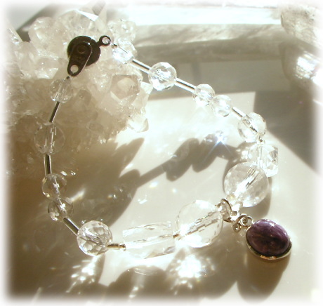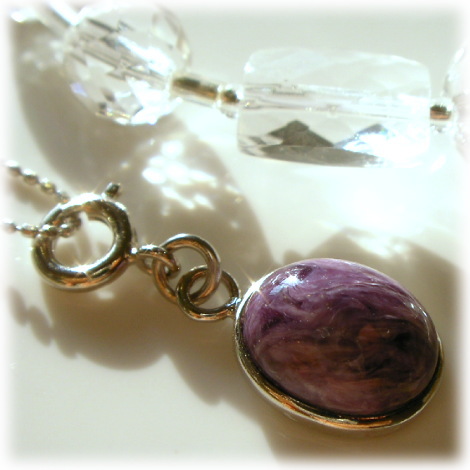 またチャロアイトには低いアストラル界に入る能力ももち 私達の心の強さと勇気を吹き込み この最初の境界を乗り越えるようにと励ましてくれます。 たとえマイナスエナジーと直面しても その暗く歪んだ部分に強烈な聖なる光と明るさを投げかけてくれます。 (よくエクソシズム(お払い)で使われるのもそのためです)