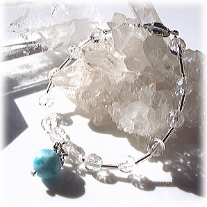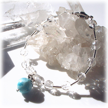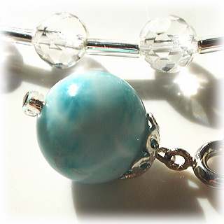 「水」と「大空」のエッセンス・・・水は感情、大空は思考・・・ ラリマーはハートの感情と頭脳の思考とのバランスを たとえそれがかき乱されているものだとしても 調和のイメージを織り成す天使の糸のような安らかな波動で 中和させ解消する手助けを行います。 ラリマーは火山性の鉱物で 熱く煮えたぎったマグマから形成されますが それからは想像もつかないような クールでソフトなブルートーンの表情を抱いています。 自分の中にあるネガテイブなエネルギーを いかにクールダウンさせていくか そして、どうポジティブに変換させ、飛躍させていくか その答えともなるカリスマ的な導きをそえ 部分的に過剰なエネルギーを、他の不足している箇所へ 生命エネルギーやポジティブなエネルギーとして送り込んでくれます。 クリスタル・ヒーリングの世界でも 他の石たちのサポート力(意味的な組み合わせ)と共鳴させることによって 精神・肉体の患部へのヒーリングを画期的に行い 新しい循環をつくり広げていきます。 また、チャクラにおける生命力バランスの流れを開いたり エネルギーの流れにおけるバランス調整まで行います。 また、ラリマーは天上的な性質の石なので 葛藤で悩んでいる時、試練を感じている時 肉体の衰えが気になりだした時など 一緒に瞑想したり、持ち歩いたり、身につけることで 新しい価値観を生み出させ 自信の育みや真実の探求、安らぎを与え