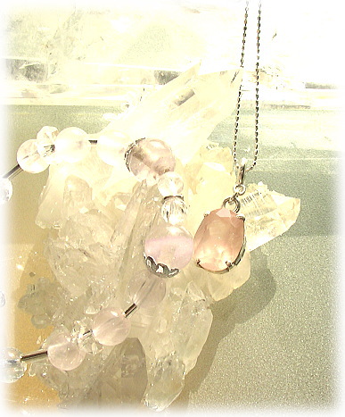 ローズ・クォーツは、ハート・チャクラにとっての基本の石です。 そのエネルギーは、自己実現や内面の平和に欠かせません。 ローズ・クォーツのやわらかで穏やかなピンクは、 ハートが集めたどんな傷をも慰め癒します。