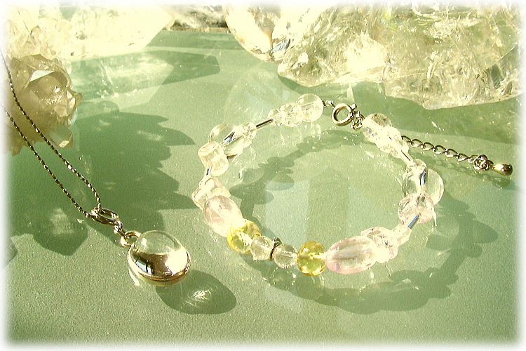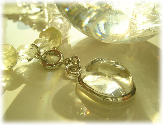 ブレス部分には、ヘリオドールやクンツァイト・レインボークォーツをちりばめています。