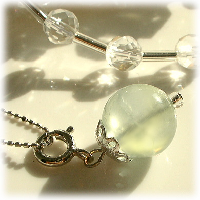 プレナイト特有の輝くようなインクルをも抱いた 天然石特有の美しさいっぱいのプレナイトです。 一粒一粒セレクトし、 選りすぐりの15石を皆様にお届けいたします。
