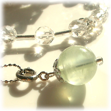 プレナイト特有の輝くようなインクルをも抱いた 天然石特有の美しさいっぱいのプレナイトです。 一粒一粒セレクトし、 選りすぐりの15石を皆様にお届けいたします。