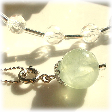 プレナイト特有の輝くようなインクルをも抱いた 天然石特有の美しさいっぱいのプレナイトです。 一粒一粒セレクトし、 選りすぐりの15石を皆様にお届けいたします。