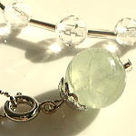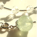 プレナイト特有の輝くようなインクルをも抱いた 天然石特有の美しさいっぱいのプレナイトです。 一粒一粒セレクトし、 選りすぐりの15石を皆様にお届けいたします。