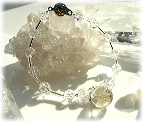 ブレス部分は美しい虹が見え隠れするレインボークォーツをあわせ