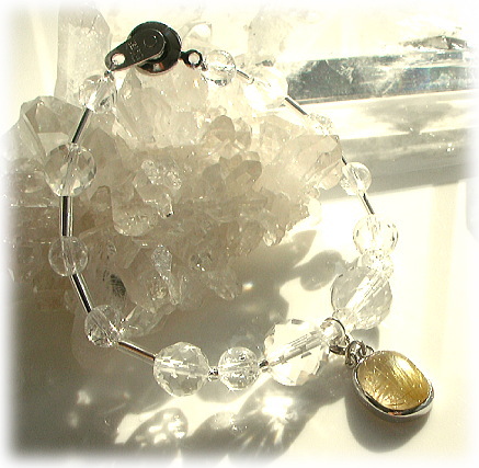 ブレス部分は美しい虹が見え隠れするレインボークォーツをあわせ