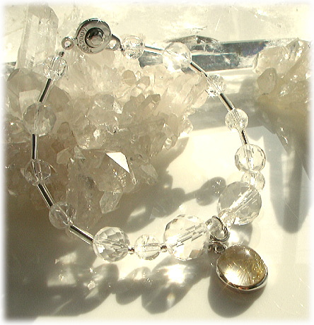 ブレス部分は美しい虹が見え隠れするレインボークォーツをあわせ