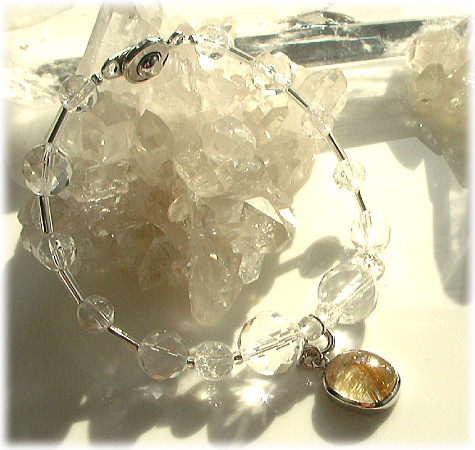 ブレス部分は美しい虹が見え隠れするレインボークォーツをあわせ