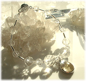 ブレス部分は美しい虹が見え隠れするレインボークォーツをあわせ