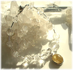 ブレス部分は美しい虹が見え隠れするレインボークォーツをあわせ