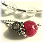 とても美しいルビーの塊からカットを施したビーズをメイキングしました。