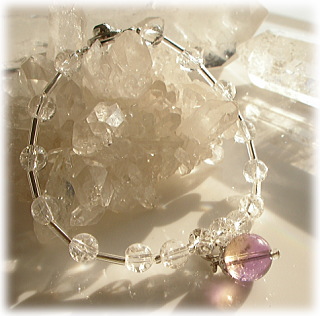 サードアイ(直観力)を増幅させるアメジストと、 明るい方向性へと導き肉体との調和をもはかるシトリンが同居する石です。
