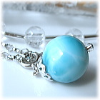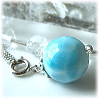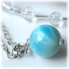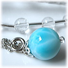 「水」と「大空」のエッセンス・・・水は感情、大空は思考・・・ ラリマーはハートの感情と頭脳の思考とのバランスを たとえそれがかき乱されているものだとしても 調和のイメージを織り成す天使の糸のような安らかな波動で 中和させ解消する手助けを行います。 ラリマーは火山性の鉱物で 熱く煮えたぎったマグマから形成されますが それからは想像もつかないような クールでソフトなブルートーンの表情を抱いています。 自分の中にあるネガテイブなエネルギーを いかにクールダウンさせていくか そして、どうポジティブに変換させ、飛躍させていくか その答えともなるカリスマ的な導きをそえ 部分的に過剰なエネルギーを、他の不足している箇所へ 生命エネルギーやポジティブなエネルギーとして送り込んでくれます。 クリスタル・ヒーリングの世界でも 他の石たちのサポート力(意味的な組み合わせ)と共鳴させることによって 精神・肉体の患部へのヒーリングを画期的に行い 新しい循環をつくり広げていきます。 また、チャクラにおける生命力バランスの流れを開いたり エネルギーの流れにおけるバランス調整まで行います。 また、ラリマーは天上的な性質の石なので 葛藤で悩んでいる時、試練を感じている時 肉体の衰えが気になりだした時など 一緒に瞑想したり、持ち歩いたり、身につけることで 新しい価値観を生み出させ 自信の育みや真実の探求、安らぎを与え