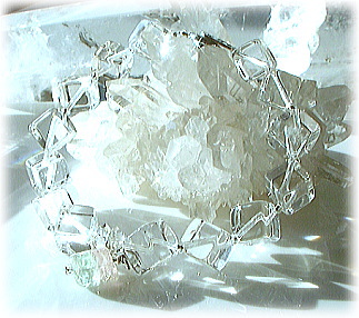 透明感たっぷりの水晶のクリアな部分のみにこだわり、まずは立方体にカットし