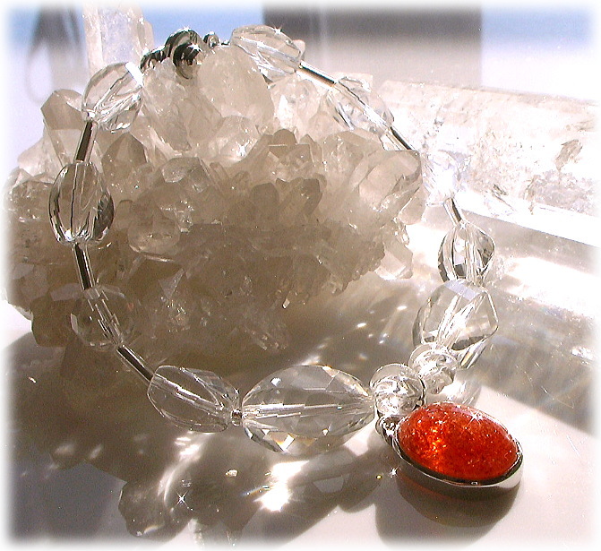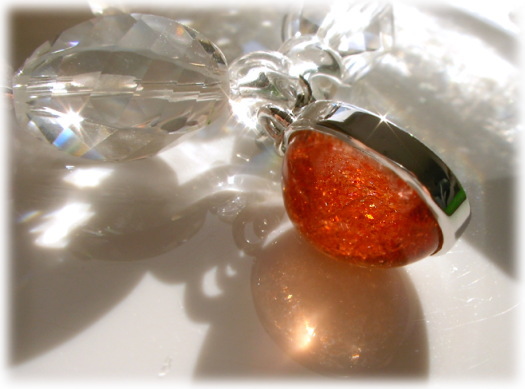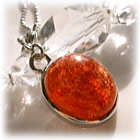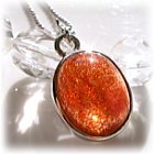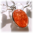 生命力あふれる色彩の中に虹色の光を反射させるような照りをちりばめているサンストーン。