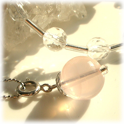 ローズ・クォーツは、ハート・チャクラにとっての基本の石です。 そのエネルギーは、自己実現や内面の平和に欠かせません。 ローズ・クォーツのやわらかで穏やかなピンクは、 ハートが集めたどんな傷をも慰め癒します。