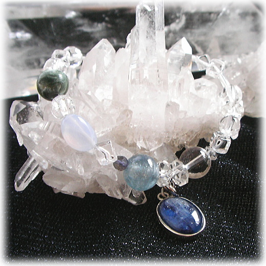 センター左・・・カイヤナイト 9mm・アイオライト・ブルーカルセドニー・セラフィナイト