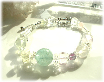 アクアマリンの左側にむかってピンク・淡パープルの光線として