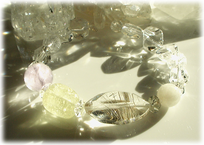 さらに、ヒマラヤ水晶たちとともにちりばめられたホワイトベリルの輝きは
