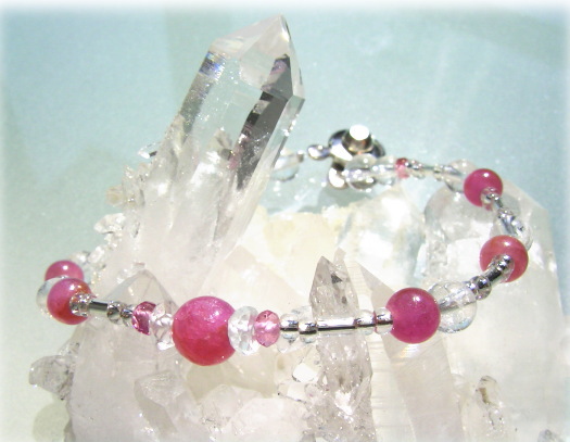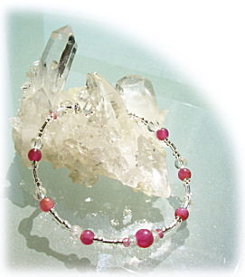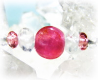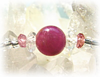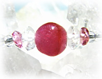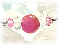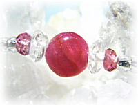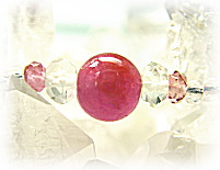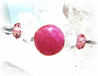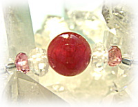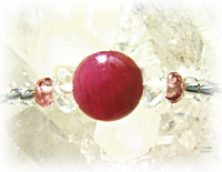 今回のブレスでの、稀に見る美しさのインド産ルビービーズは