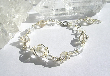光を凝縮したようなレインボークォーツが交互に輝きます。
