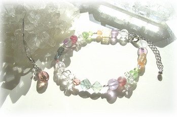 「虹色」というイメージから一連での明るいスピリチュアルブレスをつくってみたいと思いました。