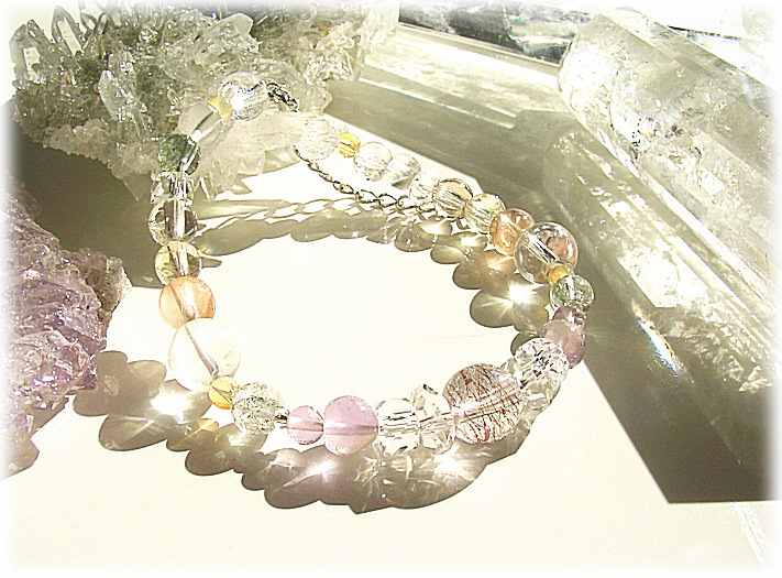 メインサイドにアメジストエレスチャルと淡いアメジストを配し