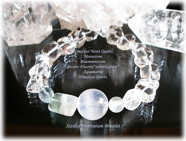 メインストーンの片側(画像右)にはムーンストーン・ブルームーンストーンからヒマラヤ水晶への流れをつくり