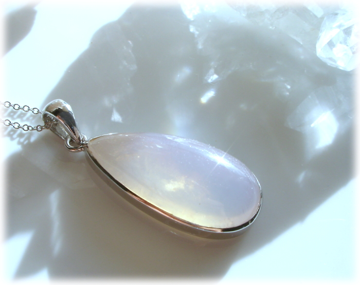 ほんのりと色づいたムーンストーンのようなローズクォーツです。