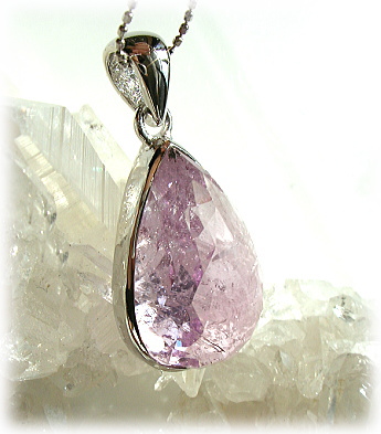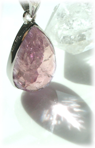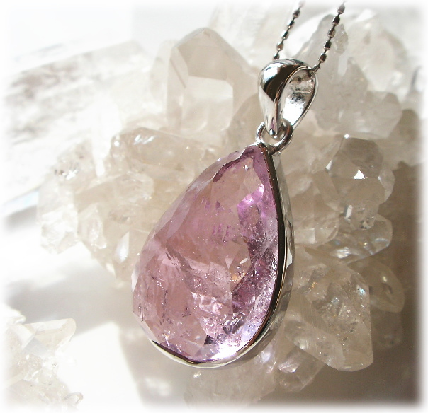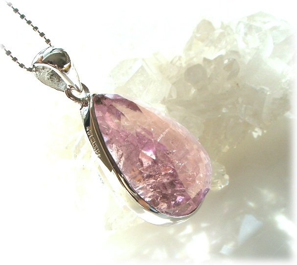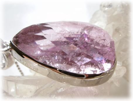 ファセットを施したブライトクンツァイトの美しさのみを強調した迫力のあるこのSIZUKUが