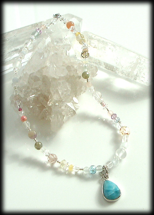 ラリマーを中心にした環をつくるために繋いでいった石たちは協調のエネルギーを奏でます。