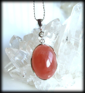 魂にも肉体にも無意識の領域で インカローズが自分の「女性」性を さらにシンボリックに形づくらせてくれて(表現してくれて) ダイヤモンドがそれをハイヤーセルフにまで繋げてくれるような 女性としての大切なお守りになるような 女神のようなオーラとエネルギー感いっぱいの 素敵なペンダントトップに仕上がりました。