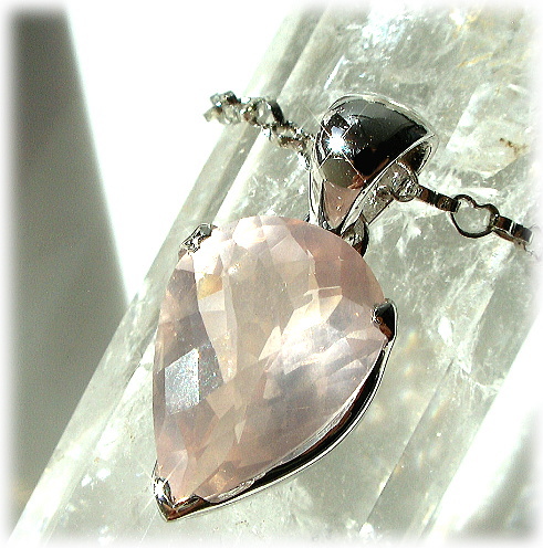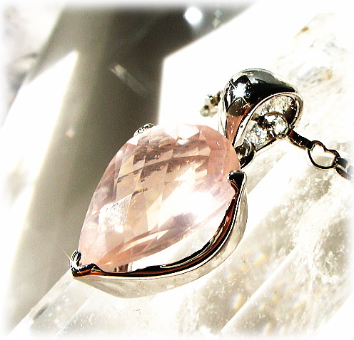 ローズ・クォーツは、ハート・チャクラにとっての基本の石です。 そのエネルギーは、自己実現や内面の平和に欠かせません。 ローズ・クォーツのやわらかで穏やかなピンクは、 ハートが集めたどんな傷をも慰め癒します。