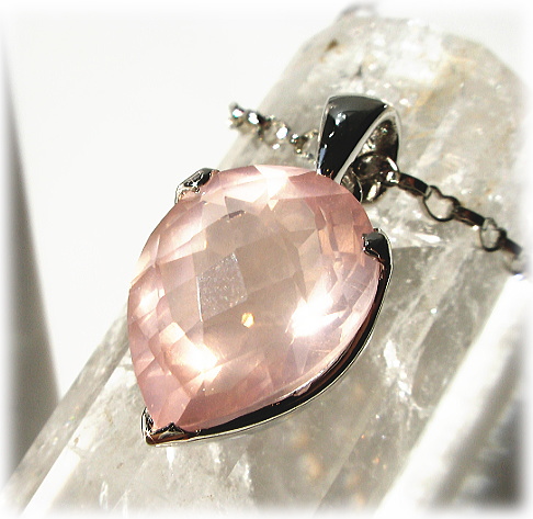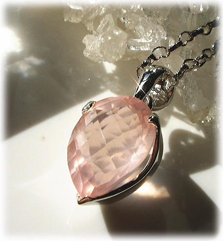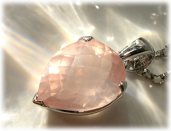 ローズ・クォーツは、ハート・チャクラにとっての基本の石です。 そのエネルギーは、自己実現や内面の平和に欠かせません。 ローズ・クォーツのやわらかで穏やかなピンクは、 ハートが集めたどんな傷をも慰め癒します。