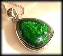 エメラルドグリーンの「クロム」がキラキラと反射しながら美しい透明感も感じさせてくれる今回の石…