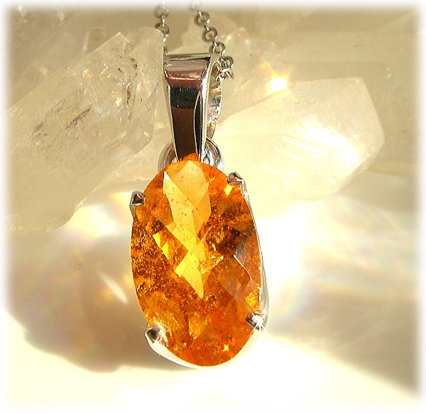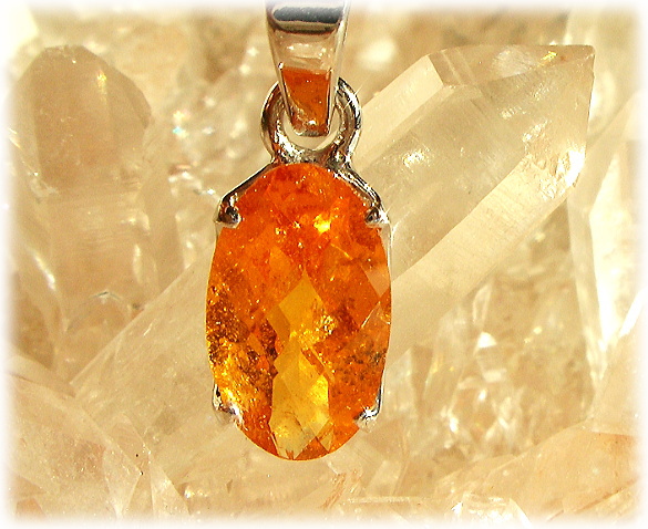 透明感たっぷりで上品なオーバルファセット…少し細めのフォルムがオレンジカラーの深さも表現し