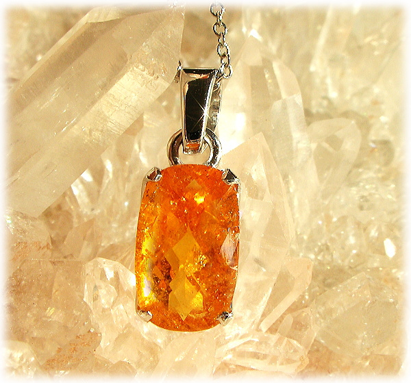 お洒落なスクエア・オーバルファセットにあわせたカットが、さらに透明感のあるオレンジカラーを際立たせ