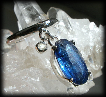 メインストーンの美しいカイヤナイトと、サイドのダイヤモンドが