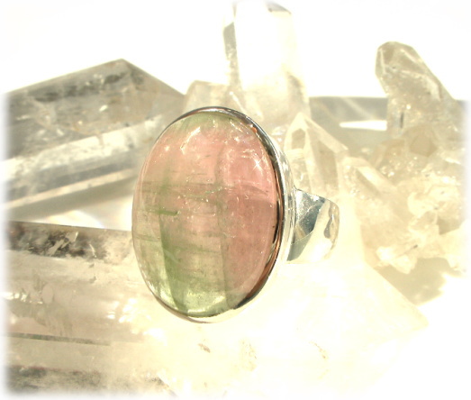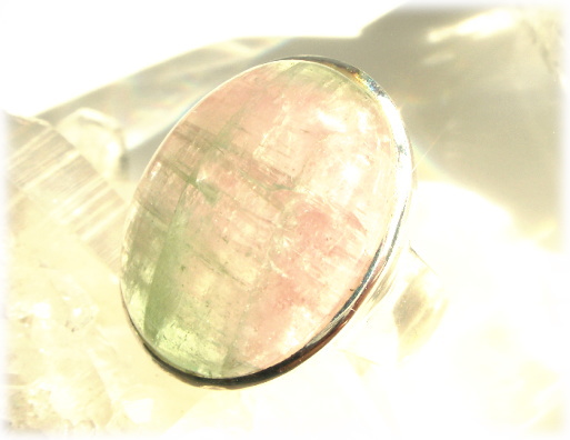 ピンクトルマリンとグリーントルマリンの美しい色彩がミックスされた バイカラーのトルマリンです。 人生を明るく、(時にはユーモアたっぷりに)応援してくれるような強力な 正エネルギーを与えてくれる頼もしいレアストーンです。 深刻になりがちな人生そのものに明るさを取り戻させてくれると同時に 道を明るく照らすことで、本物の内なる美が見られ、 感じられ、表現されるのです。 奇跡のような出来事を呼びおこす石とも言われています。