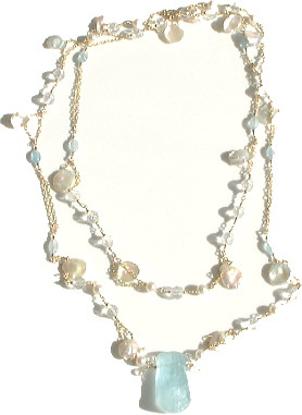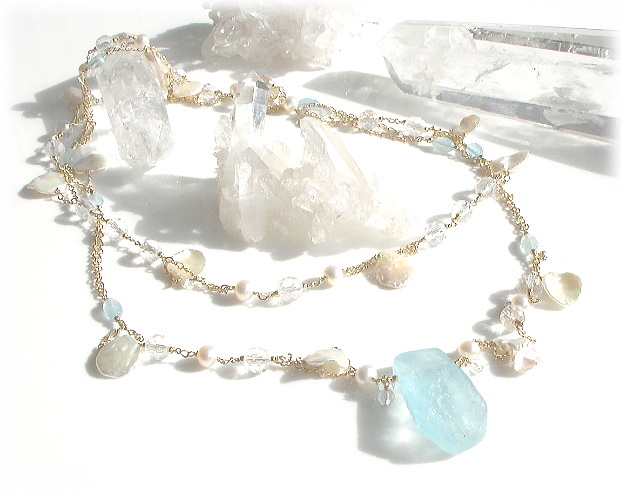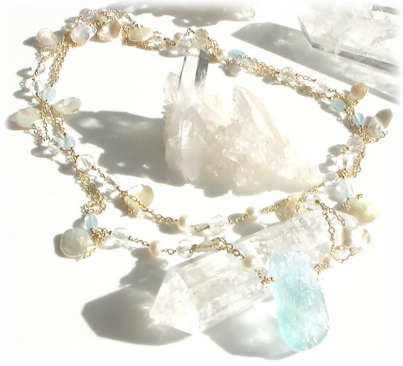 (アクアマリン with Pure water pearl &水晶 & K14Gold Filled) |