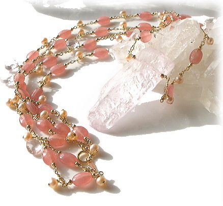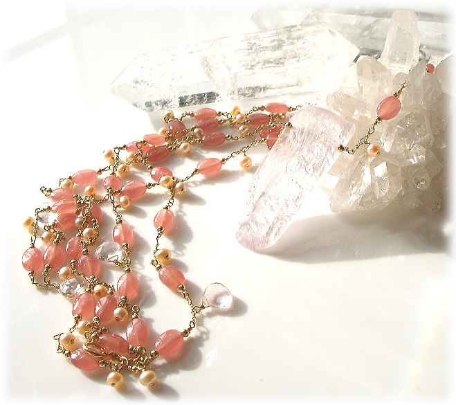 (クンツァイト with インカローズ・Pure water pearl &スターローズクォーツ & K14Gold Filled)