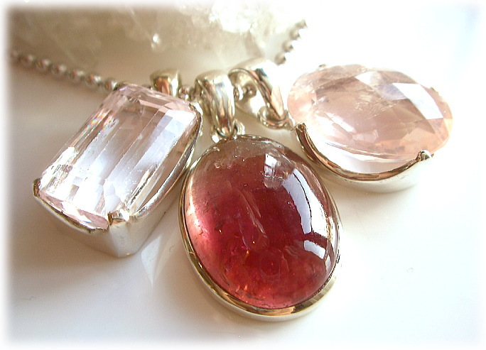 メインにはバイカラーを蓄えた(上が微妙なニュアンスを持った透明系・下が深い苺色) 美しいピンクトルマリンをメインに 透明感の強い美しいクンツァイト・ローズクォーツ・・・と それぞれ大粒で素晴らしい1石ずつのセレクトとなっております。 見た瞬間・・・3石揃った調和感の美しさに感動してしまうほどの組み合わせです。 身に着ける時は、3ストーンが基本ですが その日のコンディションで2ストーン・1ストーンなど自由に選んでいただいてもOKです。 ![]() ハートチャクラのトリニティ(三位一体)とは クリスタルヒーリングの世界で この3石(ローズクォーツ・クンツァイト・ピンクトルマリン)がそろうことで ひとつの循環をつくりあげていく組み合わせのことです。 ![]() まずローズ・クォーツが トラウマを見る時 愛を与えたり受け取ったりするハートの能力を 押さえつけていた苦しみが溜め込まれていることを強調し それを理解し、溶かし始めるのです。 愛があることが感じられると 愛の流れを抑制していた悲しみ、恐怖、憤りは 深い自己実現の感覚に置き換えられ まずは自分を愛することの大切さを教えてくれます。 ![]() そしてクンツァイトが ローズクォーツの手ほどきした内面化した自己への愛を 外側に表現できるように活性化させていきます。 その活性化の段階において、トータルな明け渡しと、 過去や未来の不安などでハートに縛り付けられている恐怖や悲しみの癒しを行い 自分の心にある本質的なマインドのバランスをとっていきます。 ![]() さらにピンクトルマリンが、 ハートを悲しみや恐怖に縛り付けている障害まで ダイナミックに変容させ、燦然と輝きを解放していきます。 クンツァイトがピンクトルマリンへと明け渡すことで その愛は外部へと解き放たれていくのです。 鮮やかなピンクは、長い間溜め込んでいる破壊的な感情を理解し 解消させる振動数でハートチャクラをヴァイブレートさせます。 ハートがこうした過去の印象からクリアーになると 感情の本当の目的を知るようになります。 それは愛が豊かに溢れていることや喜びを 表現することができるようになります。 ![]() このように、ハートチャクラ対応の3つの石がそろって一つの流れをつくることから 「ハートチャクラのトリニティ」と呼ばれています。 今回の3石は、それぞれが巡り逢う必然があったかのような・・・素晴らしい共鳴感を持っています。 (お互いにとても強く強く響きあっているようです) トラウマからの脱却・癒し・・・傷ついた心を癒しながら(ローズクォーツ) 自己愛をベースにさらなる愛情と自信への活性化を行い(クンツァイト) その気づきとバランスを華やかに燦然と外部へと解放していく(ピンクトルマリン)・・・ ![]() 傷を抱擁・癒しながら、柔らかでピュアな「女性としての心」を活性化させ 自分の中の愛、他者への愛、他者からの愛を実感できる力を教えてくれながら 「自信を持ってコミュニケーションへとつなぐことのできる本来の輝き」を 精神に肉体に…魂に取り戻させてくれます。 1石ずつでも充分に素晴らしい石たちが 3石そろって奏でるトリニティのエネルギー感の豊かさを 実感していただけますよう・・・ ご縁のある方のもとで輝き、煌いて ともに「何か」を良い方向に変換していけますように…* |